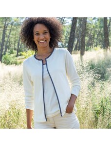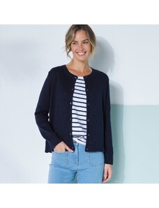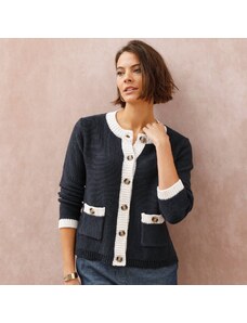 Krátky kardigan s kontrastným lemovaním ražná/nám. modrá 052 Blancheporte