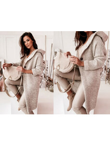 Fashionweek Dámsky luxusný pletený kabát, kardigan s kapucňou BETI