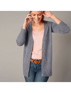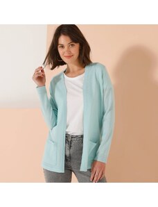 Krátky kardigan z úpletu s predĺženým vláknom sivozelená 036 Blancheporte