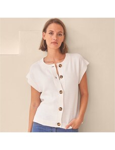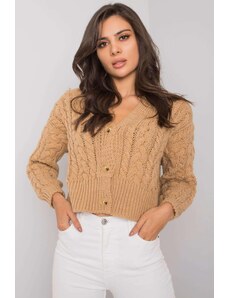 MladaModa Krátky sveter Avezzano so zapínaním na gombíky farba camel