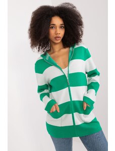MladaModa Pruhovaný sveter s vreckami a zapínaním na zips model 42638 zelený