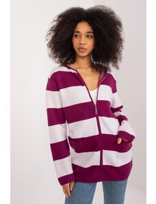 MladaModa Pruhovaný sveter s vreckami a zapínaním na zips model 42638 fialový