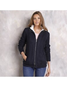 Sveter s vrkočovým vzorom na zips a hebkou podšívkou nám.modrá 050 Blancheporte