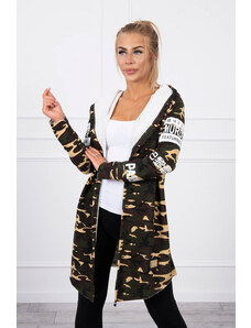 MladaModa Semišová bunda s leopardím vzorom a strapcami model 0226 farba khaki