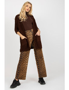 BASIC Tmavohnedý vzorovaný kardigán s pásikom BA-SW-8009-1.84P-brown