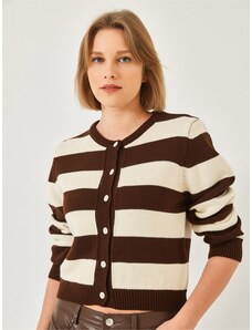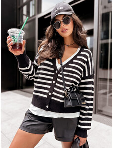 BASIC Čierny dámsky pruhovaný sveter BREEZY so zapínaním na gombíky MY1989