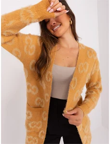 MladaModa Vzorovaný kardigánový sveter s krátkym vlasom model 70134 horčicový