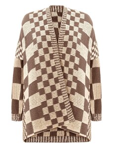 K-Fashion Dámsky sveter na gombíky s kockovaným vzorom z vlny fango