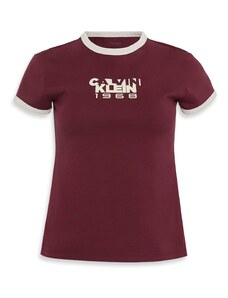 Calvin Klein Jeans Tričko '1968' bordová / prírodná biela