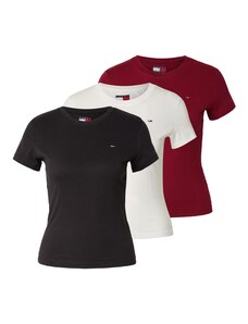 Tommy Jeans Tričko karmínovo červená / čierna / biela