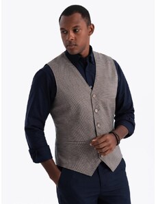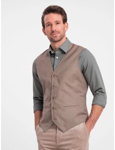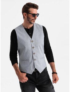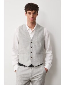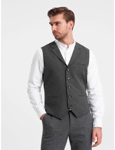 Štýlový doplnok k už aj tak skvelému obleku. Vesta tmavosivej farby je vyrobená z moderne strečovej a flexibilnej vlny v Super 100s hustote (teda mierne hrubšia, jedná sa o stredne hrubú vlnu) a tradičnej keprovej (tvil) väzbe. Univerzálny strih.