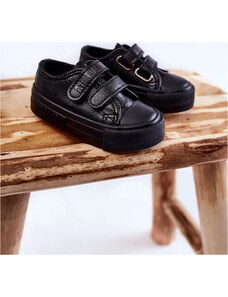 Detské kožené tenisky na suchý zips čierne BIG STAR