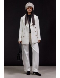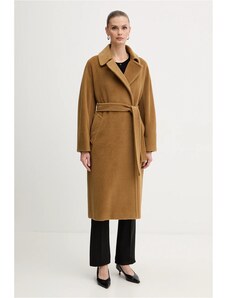 Dámský kabát v tmavě zelené barvě. Kabát má 3/4 délku a zapínání na zlaté knoflíky. Po straně má kabát kapsy. Kabát je elegantní a krásně sedí na těle. Hodí se k šatům či sukni, do práce i do města.