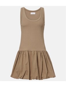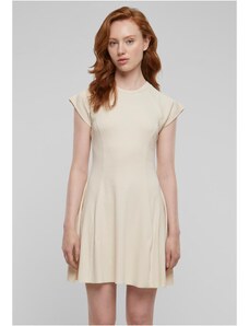 K-Fashion Dámske bavlnené šaty s krátkymi rukávmi a nastaviteľným volánom béžovej farby