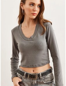 SUBLEVEL Čierny dámsky crop top bez ramienok D16048W02497A-black