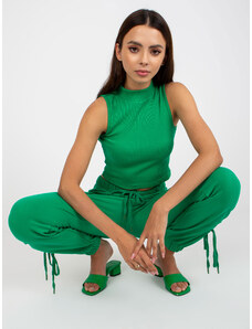 BASIC FEEL GOOD Zelený rebrovaný crop top AP-TP-110.79-green