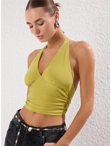 BASIC FEEL GOOD Svetlozelený dámsky crop top RV-TS-7541.06-green