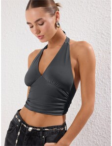 SUBLEVEL Čierny dámsky crop top bez ramienok D16048W02497A-black