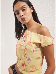 ADIDAS ORIGINALS Top 'ROUCHED ONE SHOULDER' žltá / smaragdová