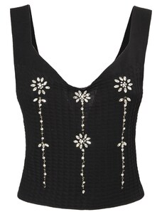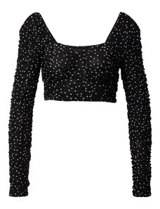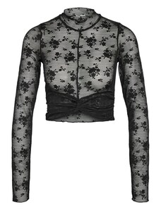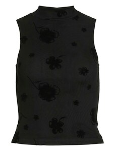RUE PARIS Čierne kvetinové tričko s riasením RO-BZ-2516-8.28-black
