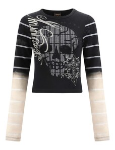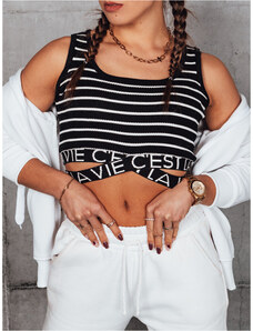 BASIC Bielo-čierny dámsky pruhovaný crop top s viskózou LA VIE CEST RY2314