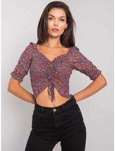 RUE PARIS Modrý kvetinový top so stiahnutím -RO-BZ-2516-8.28-blue
