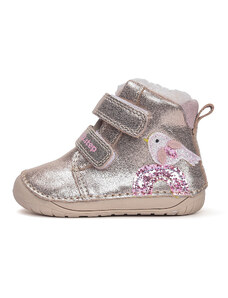 Detská zimná, kožená BARE FOOT obuv, mäkká-flexibilná podrážka pre pohodlnú chôdzu a praktické zapínanie na suchý zips. Obuv je celokožená s anatomicky tvarovanou stielkou zateplená kožušinou aby pre deti bola maximálne pohodlná a je vyberateľná. Podrážka je lepená a aj šitá najmodernejšou 3D technológiou. Obuv D.D.Step je odľahčená, ohybná a pri prstoch širšia. Dľžky stielok: 20 - 12,5cm // 21 - 13,0cm // 22 - 14,0cm // 23 - 14,5cm // 24 - 15,0cm / 25 - 16,0cm šírka: 20 - 5,5cm / 21 - 5,6cm / 22 - 5,8cm / 23 - 6,0cm / 24 - 6,1cm / 25 - 6,3cm