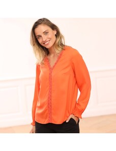 Jednofarebný top s výstrihom do V a čipkou papriková 046 Blancheporte