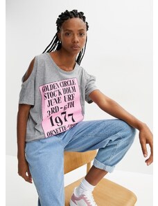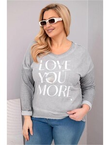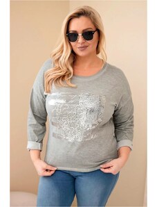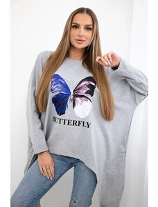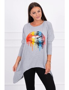 MladaModa Oversize blúzka s potlačou a predlženou zadnou časťou model 31016 šedá