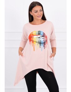 RELEVANCE Svetloružová asymetrická tunika s nápisom RV-TU-7505.15-light pink