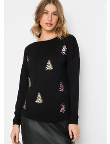 Bonprix Tričko s netopierími rukávmi a dierkovanou výšivkou, farba čierna