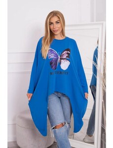 MladaModa Predlžená oversize blúzka s potlačou motýľa kráľovská modrá