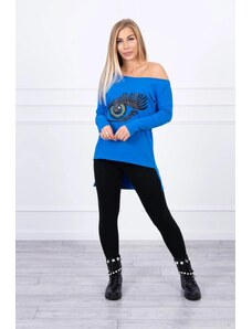 MladaModa Blúzka s motívom oka a predlženou zadnou časťou model 9315 kráľovská modrá