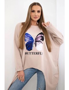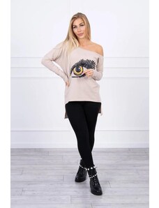MladaModa Blúzka s motívom oka a predlženou zadnou časťou model 9315 béžová