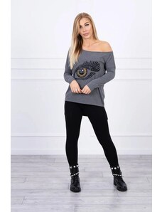 MladaModa Blúzka s motívom oka a predlženou zadnou časťou model 9315 grafitová