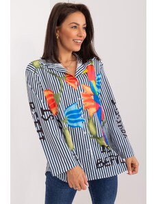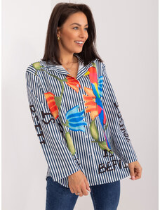 MladaModa Pruhovaná košeľa s potlačou model 50199 námornícka modrá + biela