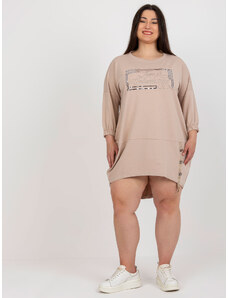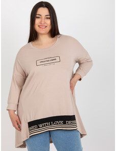 RELEVANCE Béžová asymetrická tunika s nápisom -RV-TU-7505.15-beige