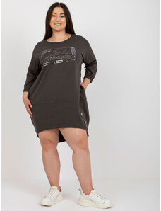 RELEVANCE Tmavá-khaki asymetrická tunika s nápisom RV-TU-7505.15-dakr khaki