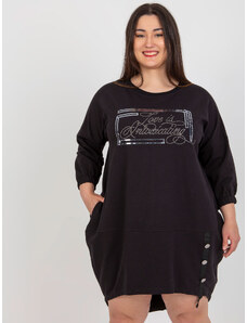 MladaModa Oversize blúzka s potlačou a predlženou zadnou časťou model 31016 čierna