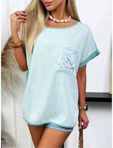 RELEVANCE Svetlozelená blúzka s nápismi RV-BZ-9450.36-light blue