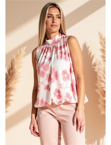 FIGL Bielo-ružová dámska blúzka bez rukávov M1143 Pink