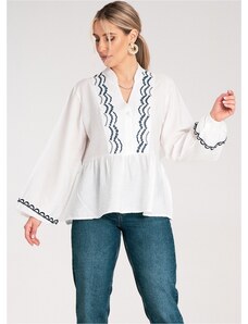 FIGL Biela dámska viskózová blúzka s dlhými voľnými rukávmi M1192 White