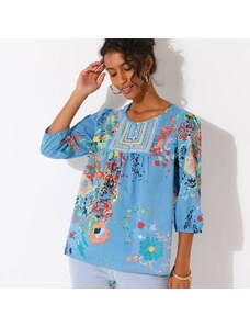 Blúzka s výšivkou a kvetinovou potlačou modrá/koralová 036 Blancheporte