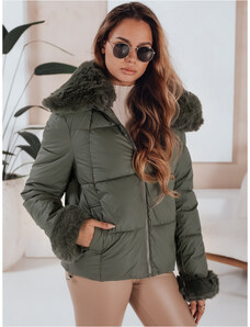 MladaModa Kožušinková bunda s podšívkou model 35996 farba khaki
