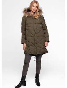BASIC Khaki dámska zimná prešívaná bunda s kapucňou MODIVA TY4727
