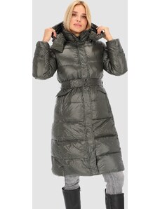 Perso Khaki dámsky dlhý páperový kabát s pásikom BLH 220019 FX - Khaki