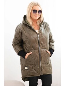 MladaModa Prešívaná zimná bunda s kapucňou a vreckami model 44554 farba tmavá khaki