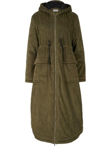 Bonprix Kordový kabát s kožušinkou na kapucni, z čistej bavlny, farba zelená