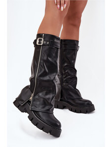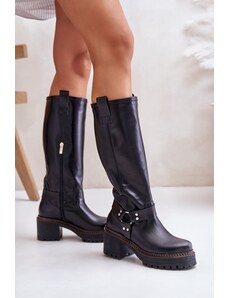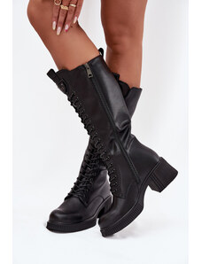 Skórzane Sznurowane Kozaki Na Klocku Ocieplane Vinceza 66804 Czarne