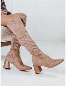 Dámske semišové čižmy nad kolená béžové FashionStreet ZY1332